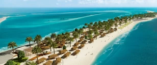 Sir Bani Yas Island – uma ilha privativa no Golfo Arábico. Toda a estrutura de alimentação, bebidas e recreação do navio é levada para a praia para uma experiência única.